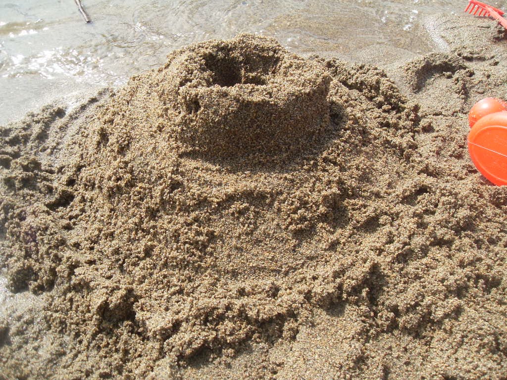 Vi koste oss der i mange timer, badet, bygde sandslott og klatret litt.